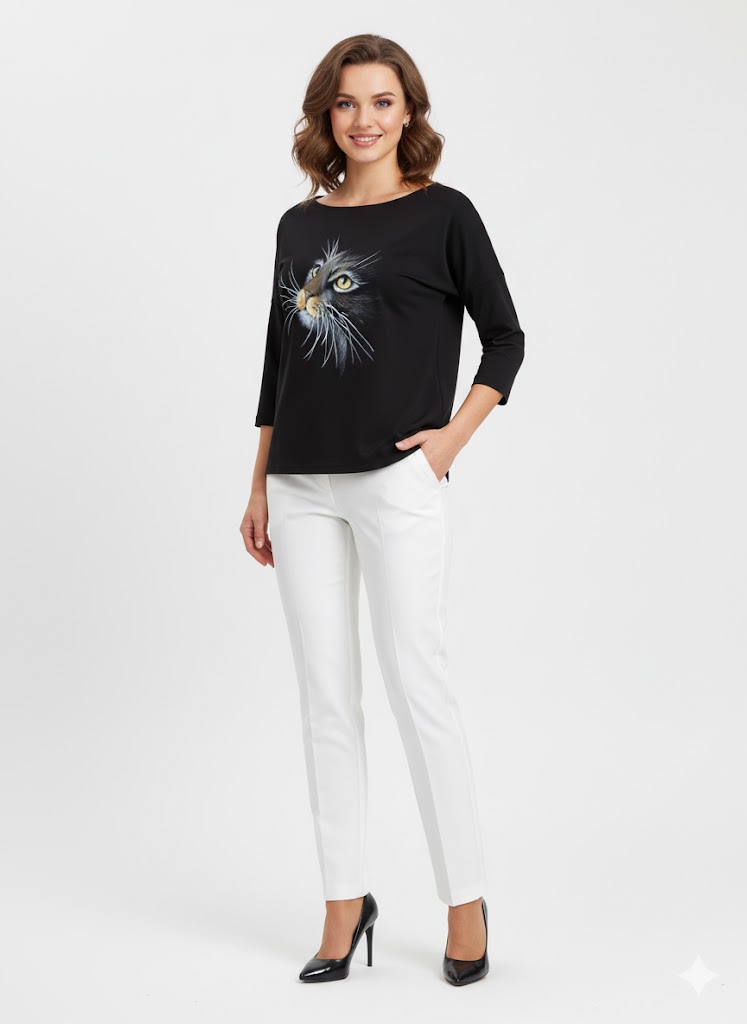 Krój: Przód krótszy, tył dłuższy, rękaw 3/4
